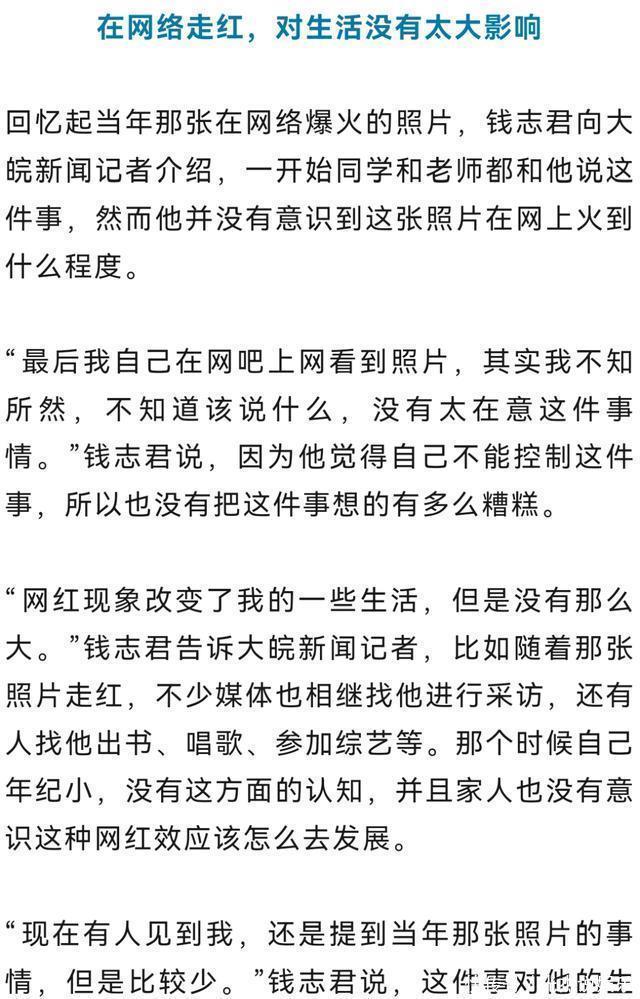 他最近聊起网红现象,说现在的网红和以前一样,都需要些必要的因素,只是时代不同了。这话说得轻巧,但细想挺深刻。他经历的是“内容找人”的蛮荒时代,一张图就能引爆;现在是“人找内容”的算法时代,红需要更精密的计算和更持久的输出。但内核没变,都得有那么点“意外性”和“共鸣点”。他是过来人,看得明白,所以也不焦虑,不比较。从一个猝不及防被推到聚光灯下的少年,到一个懂得在镜头外经营自己幸福的父亲,钱志君这二十年,像一部微缩的中国网民心态变迁史。我们看着他被娱乐,也看着他慢慢找回自己。这大概给所有被流量砸中,或渴望被流量砸中的人提了个醒:网络上的热闹终归是海市蜃楼,能托住你人生的,永远是线下那些具体而微的、需要你亲身去构建的关系与日常。红不红是运气,怎么活是选择。他选择转身,走进了热气腾腾的生活里。那张著名的“蔑视”脸,如今再看,竟像是对过去那种被围观人生的一种告别。现在的平静,才是真正的胜利。