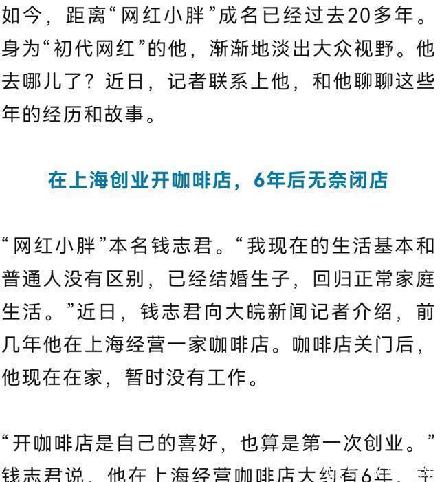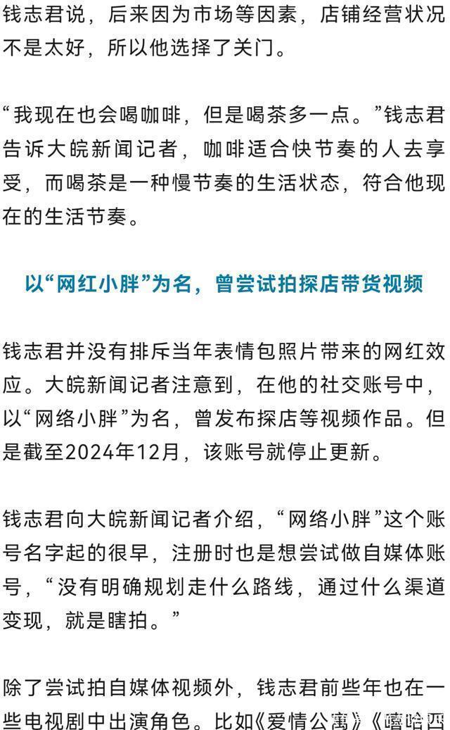 但红得快,往往意味着路更难走。他上过《舞林大会》,也演过一些戏,可“小胖”这个标签太沉了,沉到盖过了他本来的名字——钱志君。大家记住的是那个表情,而不是他这个人。那几年,他像活在一个巨大的符号里。你说他算进了娱乐圈吧,又始终在边缘;你说他是普通人吧,走哪儿都有人指指点点。这种不上不下的滋味,恐怕只有当事人知道。